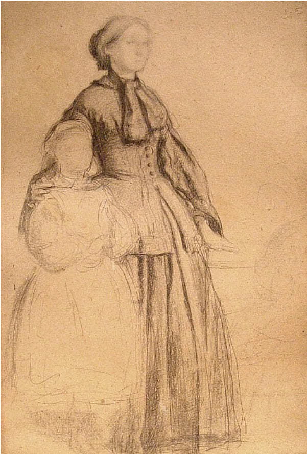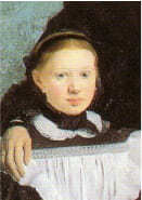 Старшая из сестёр — маленькая красавица. Младшая дьявольски умна и добра, как ангел. Я пишу их в траурных платьях и белых фартуках, которые очень им подходят. Младшая изображена смотрящей на отца, и является композиционной связью между её отчужденными родителями.